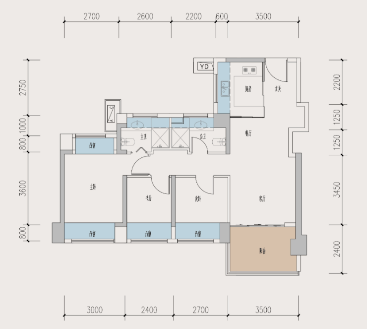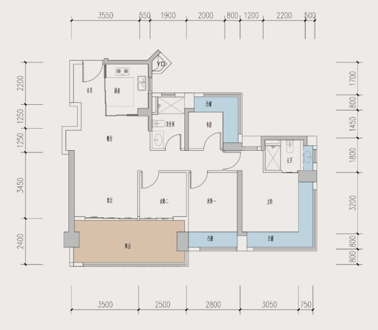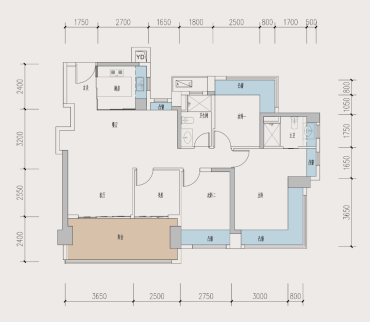 · 双L型采光飘窗,拉宽采光面,空间宽敞实用