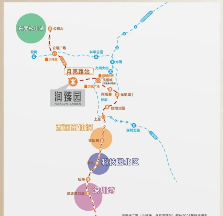 立体交通:轨道交通直线距离约600m到达地铁13号线月亮路站(建设中),1站凤凰城,9站到南山,2025年将推动13号线二期(北延)建成通车(信息来源:宝安日报),近享3纵4横公路网,咫尺松白路/东明大道双城市干道,东明大道2025年已通车,从项目至凤凰城地铁站开车仅5分钟车程