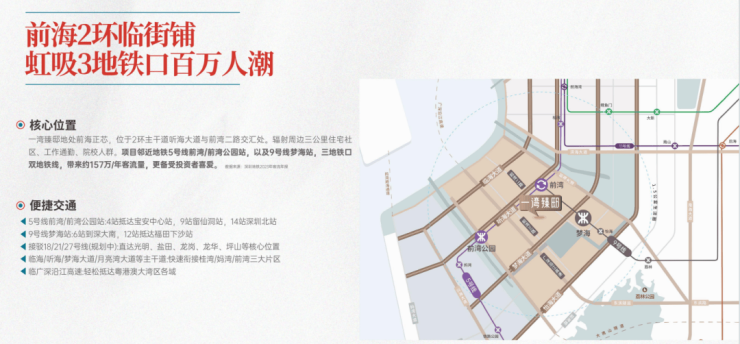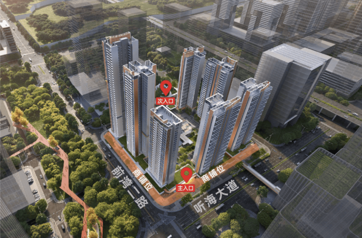 ◎强昭示性:首层临街旺铺为主,紧邻听海大道、前湾二路主干道,商业封面昭示性极强;