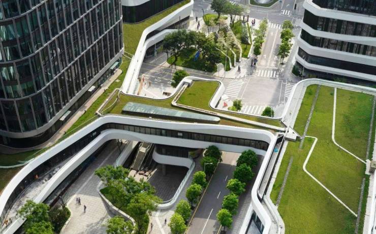 该个项目的核心是创造了在不同功能间产生相互作用,并形成生机勃勃的零售空间的多层次街区景观。Farrells的设计将塔楼和街区景观环环相扣,这种构想是从深圳城市化最初的几十年中,以壮观的购物中心和独立的塔楼占据主导地位的开发模式中进化而来。整体总体规划设计完善、优雅,以商业为主导。由于两片土地紧邻前海湾地铁站,交通便捷。绿化空间、地铁连接和多层次动线无缝地编织进更广阔的前海步行网络中。营造多层城市。
