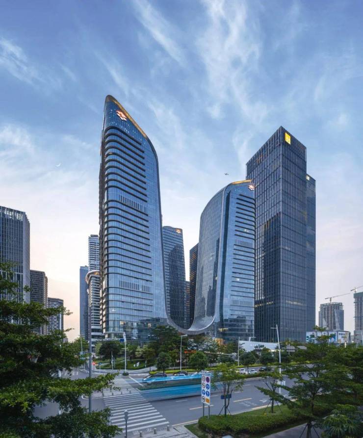 该项目共有四座独具特色的办公塔楼,包括300米高的地标塔楼和180米高的门户塔楼以及两座住宅塔楼,每座都满足了业主和住户的极高需求。门户塔楼在塑造新兴城市的形象中扮演了重要的角色,以一种欢迎的姿态象征了深圳空前发展的下一个新篇章。