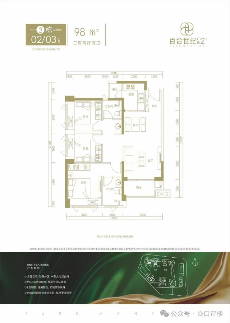 这次准备推售百合世纪广场二期(B-02地块),总占地面积约3.6万㎡,总建筑面积约27.03万㎡,计容建筑面积约19.38万㎡,共由3栋7个单元组成,总高是31-48层的住宅,其中1栋1单元住宅42F,1栋2单元住宅47F,2栋1单元住宅46F,2栋4/5单元住宅48F,3栋1/2单元住宅31F,另外2栋2单元公寓30F,2栋3单元商务办公楼22F,4栋是1所九班制幼儿园。