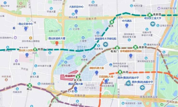 桂庙新村城市更新单元位于南山区粤海街道白石路与学府路交叉口西北侧,东临白石路,西近南海大道,南临学府路,北面与深圳大学毗邻。周边集聚了腾讯滨海大厦、软件产业基地等写字楼,地理位置优越。