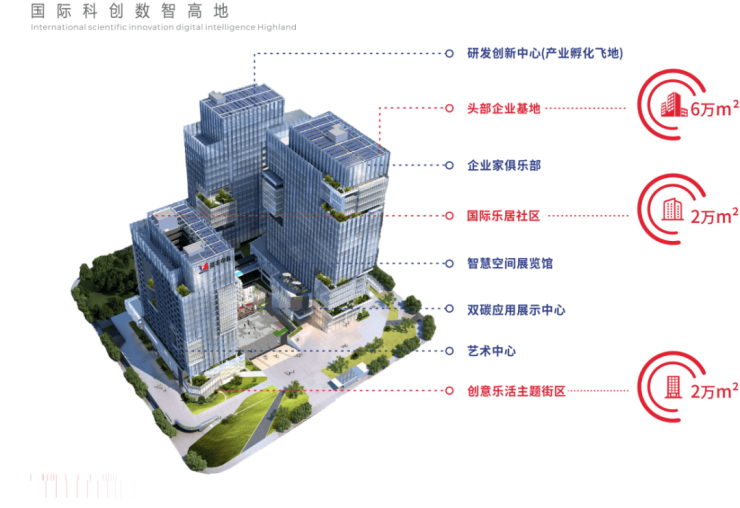 项目总建筑面积14万㎡(含地下空间),其中,6万㎡头部企业基地、研发创新中心。2万㎡国际乐居社区、2万㎡创意乐活主题街区。