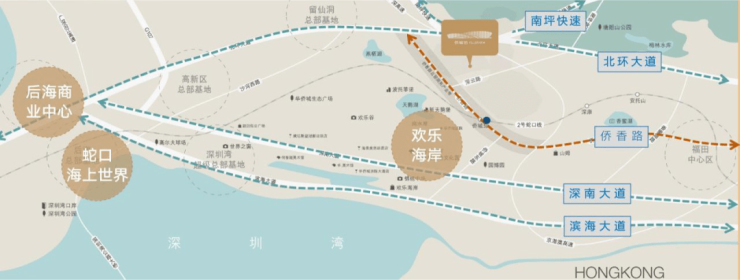 多重干道环绕(广深高速、北环大道、侨香路)瞬达机场、高铁等重要交通节点