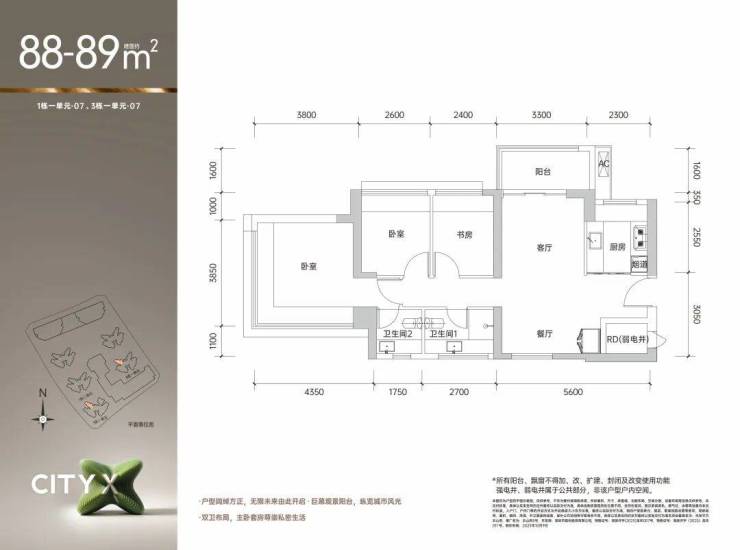 🏆 王炸户型 约89㎡3+1房2厅2卫🏆