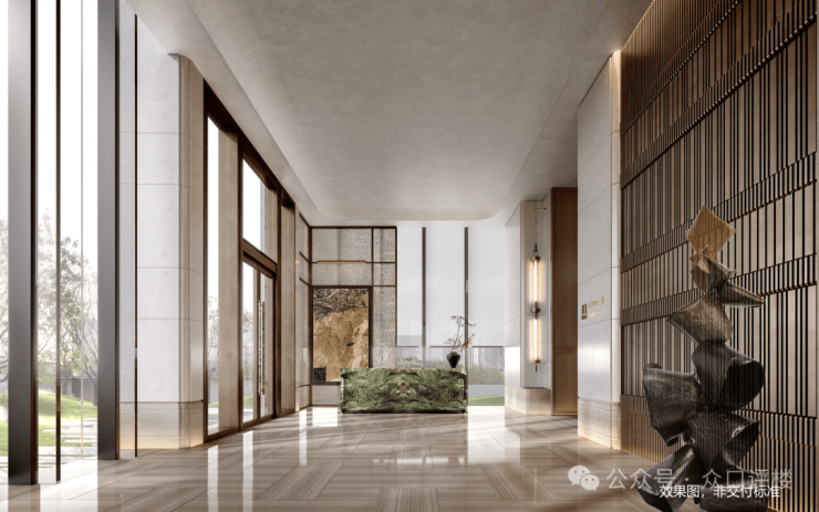 门仪:约70m宽高定奢阔豪门主入口,斥重资引入绿奢原石照壁、天然花岗岩门头,采用鲁班尺吉数,蕴藉东方;
