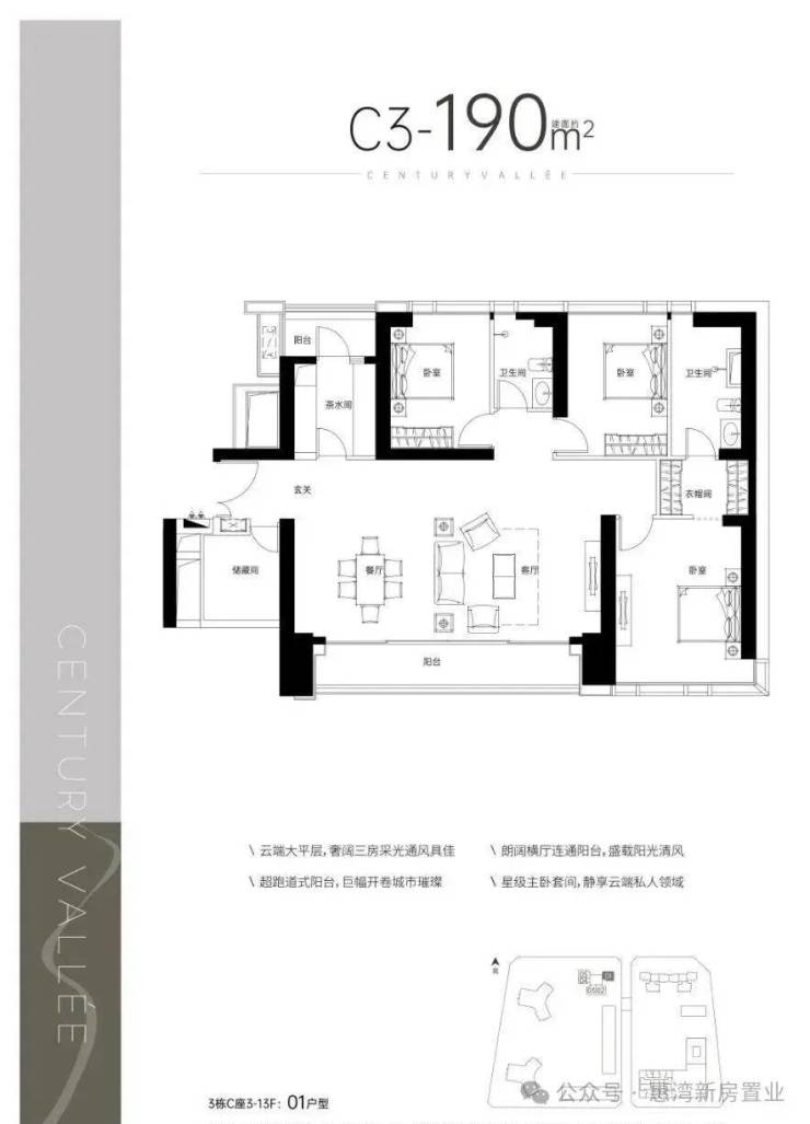 约131-262㎡2-5房,天幕公馆,70年产权,户户带阳台。由“全球百大设计巨头”矩阵纵横设计,约3.3m奢阔层高,环幕景观阳台。