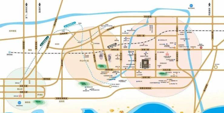 交通配套:项目位于石化大道旁,距离深圳地铁14号线沙田站约6.6公里、16号线田心站约9公里(均已开通),临近深大城际(建设中)规划站点、深惠城际(规划中)
