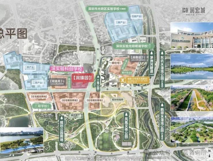 润宏城位于深圳市光明区凤凰街道13号线二期月亮路站旁,由华润置地和宏发集团联合打造,整体规划约382万㎡超大体量城市综合体,集轨道交通、优质教育、城市公园、创新产业、品质居住于一体,打造“宜居、宜业、宜游”都市生态标杆大城。