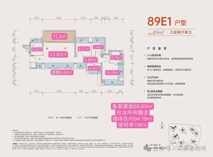部分户型使用率超100%,实用率拉满,舒适度翻倍。