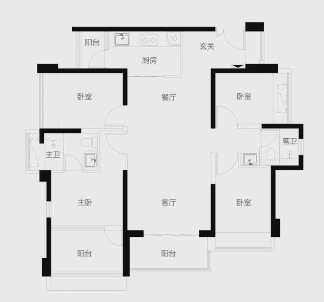 【1栋2栋05户型143㎡4房2卫】宽敞横厅设计,正南朝向,通风采光俱佳