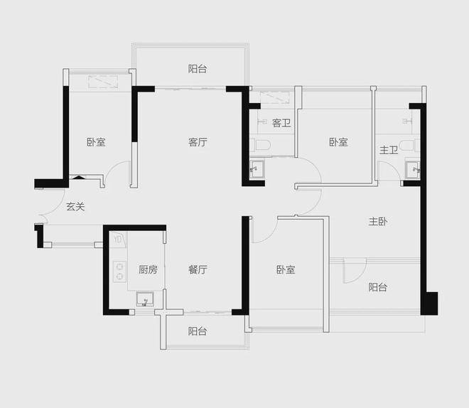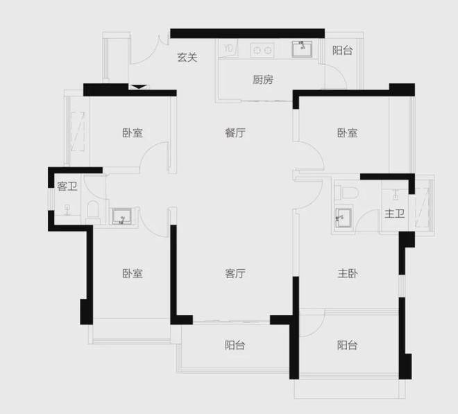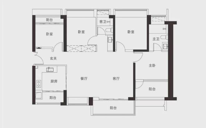 双龙抱珠设计,主要生活空间 ,看中心园林景观舒适四房,三面采光,全明户型