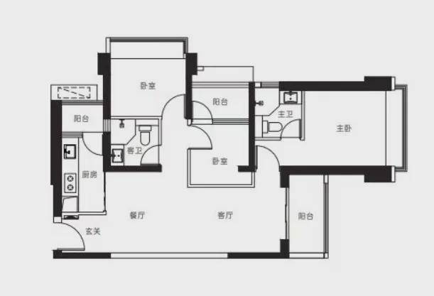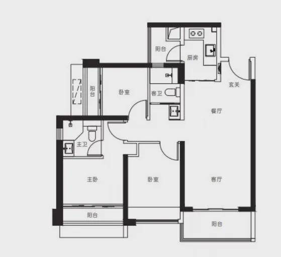 客厅横厅朝南带阳台,主卧朝南,2房朝北