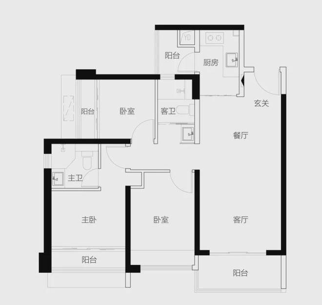 【3栋4栋01/02户型96㎡3房2卫】客厅朝南带阳台,2房朝南,1房朝西/东