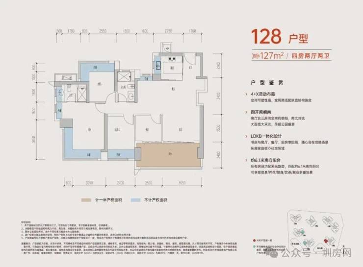 四开间南向采光,约6米开间阳台,客厅与次卧可拓展,双L型飘窗,多面采光通透舒适,开阔视野 、无遮挡、看公园景观