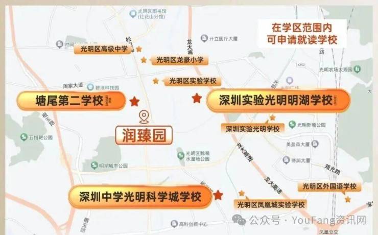 深圳中学光明分校、深圳实验光明分校、塘尾幼儿园、博华学校、光明区实验学校、光明区外国语学校