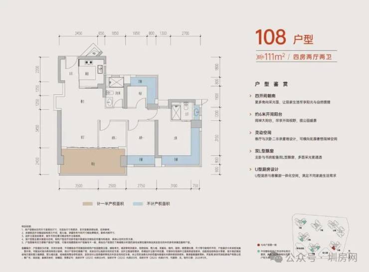 竖厅设计动静分区,约3.5米开间主卧,带独立卫生间,书房L型飘窗,多面采光更通透,U型厨房布局,流线顺畅。