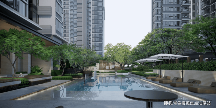 约400㎡复合泳池串联了水岸聚会廊下空间,打造游泳与家庭遛娃双核场所,在游泳的同时也能感觉惬意放松,也方便家长照护孩童并促进邻里交流。