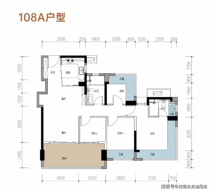 相比89E户型,飘窗设计相对较少,整体赠送空间与市场主流产品接近,实用率约95%。户型规划方正,动静分区合理,采用四开间朝南设计,采光和居住舒适度较好,算是中规中矩的产品。
