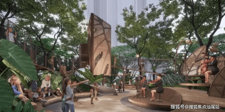 与千篇一律的社区不同,项目将约1500㎡的达尔文营地搬进孩子的日常,打破“自然缺失症”桎梏。通过精心设置大叶植物王国、植物认知区与科普园地,让孩子们能随时随地亲近自然、探索自然。