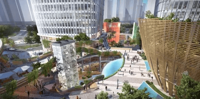 前海时代巨制约129.5万㎡TOD超体,集住宅、办公、酒店、商业、公园、学校等全业态,超前实践居住、商务、社交、休闲等一站式价值链接。