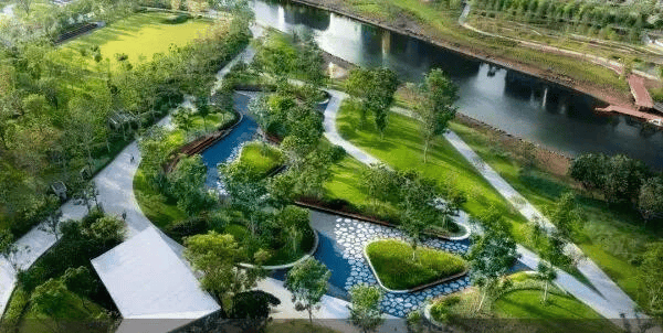 近揽以城市客厅为主体的公园、绿道、水体等中央生态体系,桂湾公园、演艺公园、前海石公园、运动公园、中轴公园等自然簇拥,城市、人与自然无界交融。