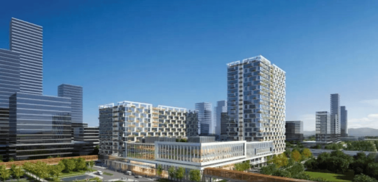 总建面约84.3万㎡,集住宅、办公、商业、公寓、酒店五大业态,定位居住、商务、文化享受、休闲娱乐等全场景切换的超级综合体。