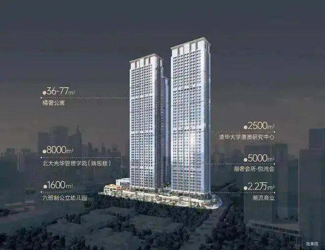 项目以37万㎡体量聚合公寓、商办、商业、教育等全业态,北大光华管理学院和清华港澳研究中心的入驻,直接提升区域产学研高度,成为稀缺资源聚合器。