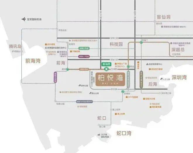恒裕柏悦湾位于深圳市南山区东滨路与向南路交汇处(地铁9号线南油西站)
