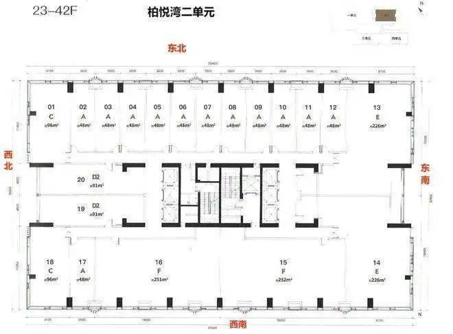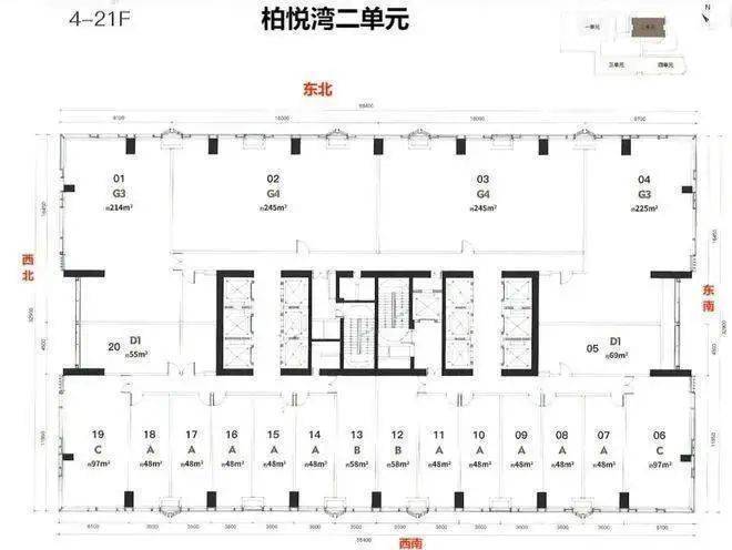 楼层高:1单元5-40层-2单4-43层元商办43层,3-4单元4-48层