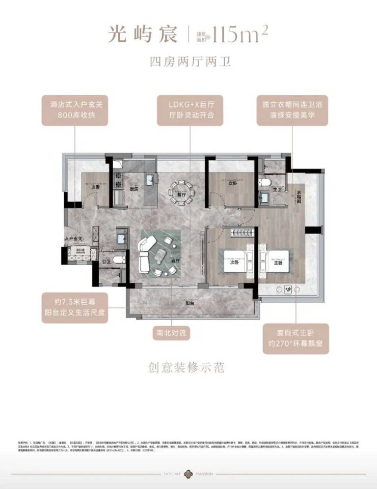 115㎡四房两卫(光屿宸)总价424-444万,单价3.69-3.87万/㎡;
