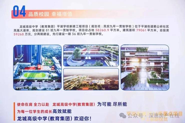 项目内配建 2所幼儿园,西侧规划建设龙城高级中学平湖学校,覆盖 81班(含小学、初中)。