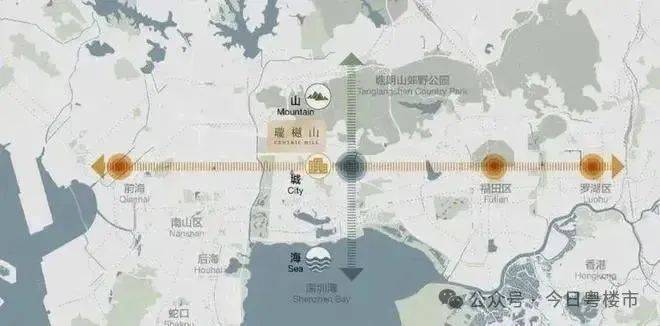 最低密的山海环城公园带:三山六公园环绕,背靠塘朗山、安托山、燕晗山,30KM山海环城公园带,近20余万平米山体公园。