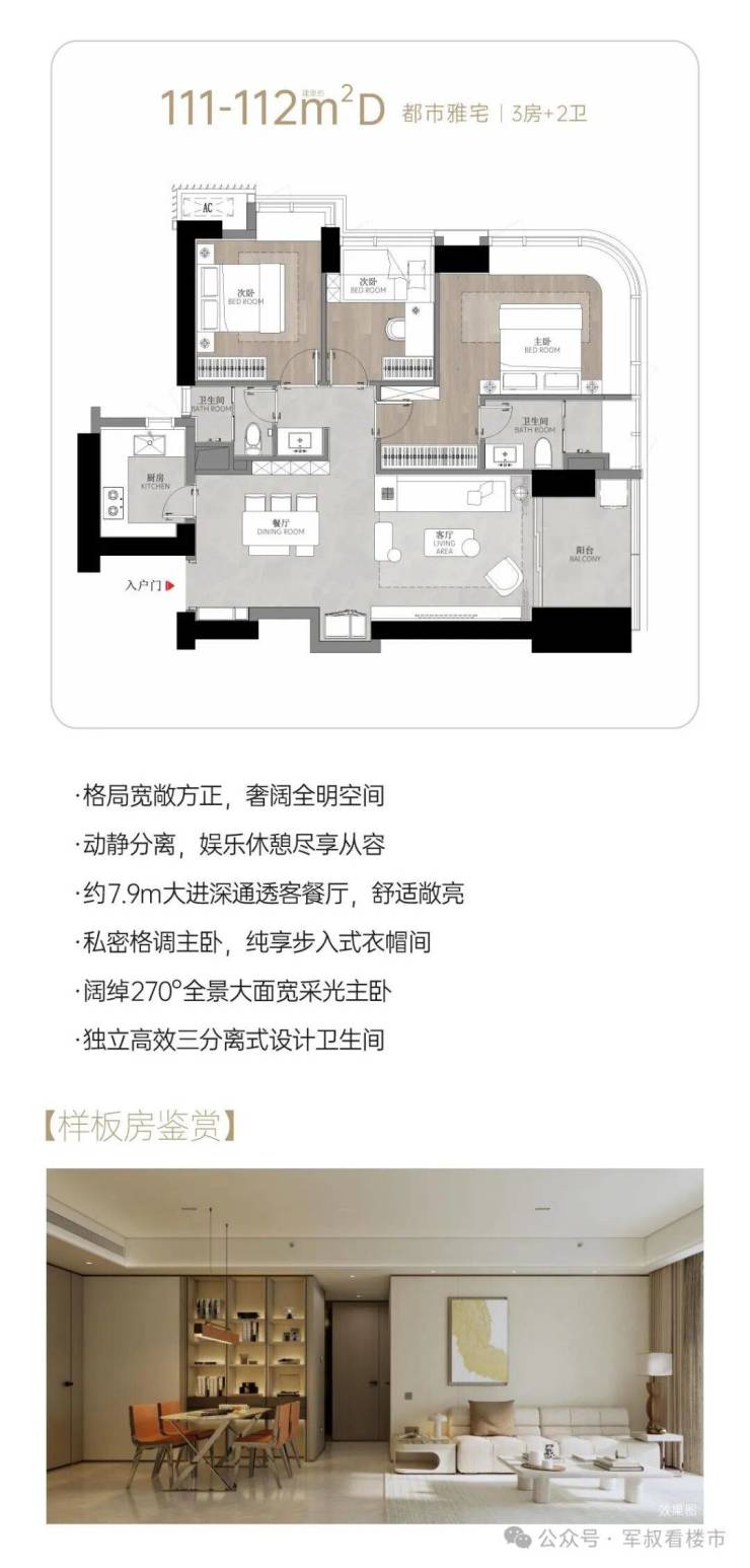 111㎡三房:竖厅+6.7米观景阳台,总价约900万起(刚改上车);