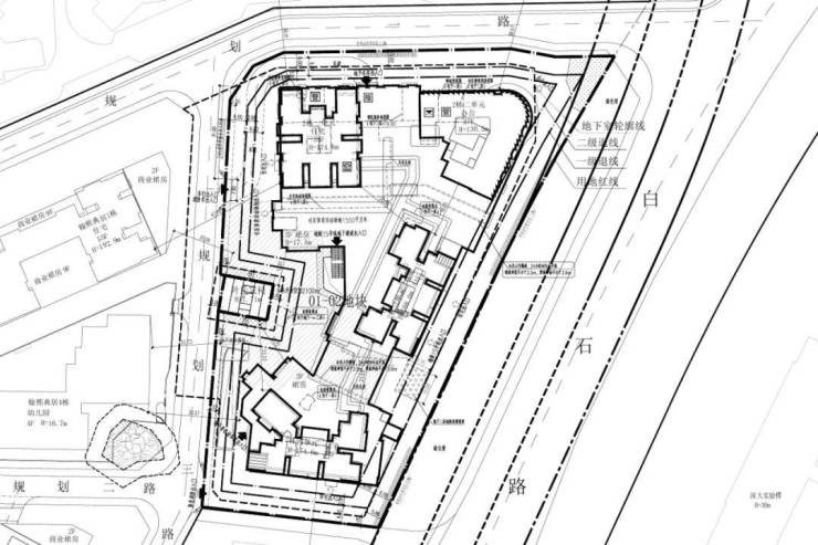 01地块:规划3栋44层、55层、55层超高层住宅(1栋一、二、三单元),以及1栋幼儿园(4栋)。