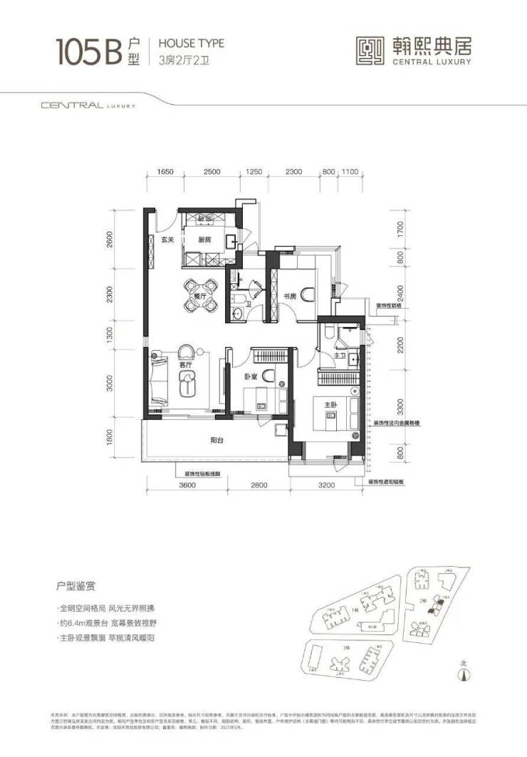 105㎡B户型:位于三单元02、06梯腿,3房2卫、竖厅格局,06梯腿朝小区内部,02梯腿朝东,相对来说是这一次性价比最高的户型。