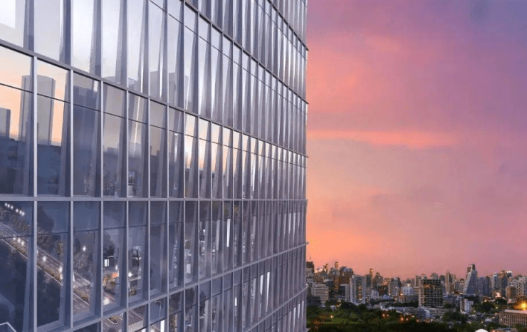 1️⃣现代简约的建筑形态,以LOW-E中空玻璃,辉映城市璀璨光影