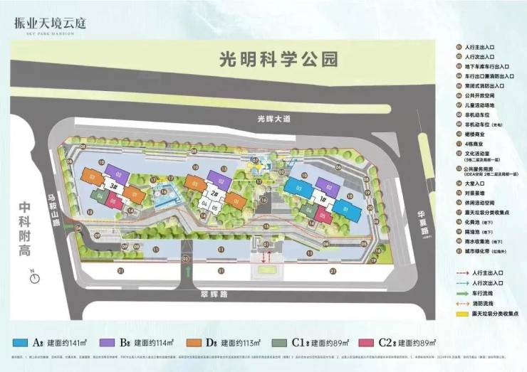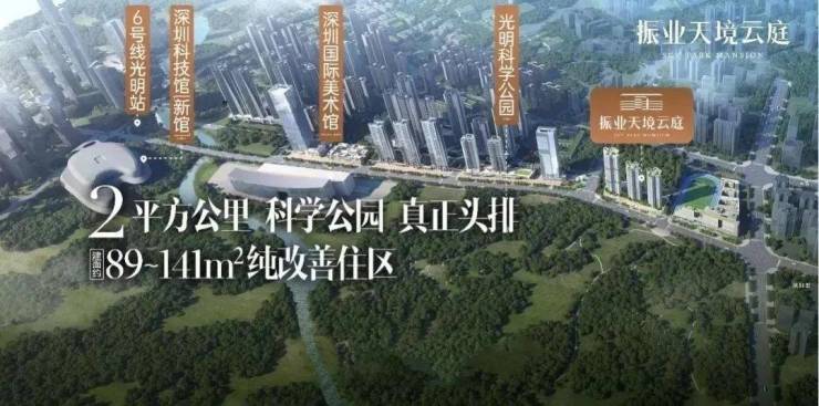 振业天境云庭位于光明区新湖街道光辉大道与华夏二路交汇处西南侧,南临安联尚璟府,北侧即是科学公园。