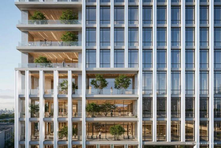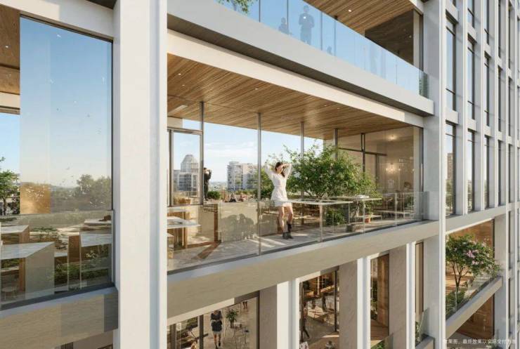 片区首创以生态阳台、空中绿洲、云端花园三大特色拓展空间赋能生态办公,致力打造以“头部科技企业引领,多元产业主体共生、区域能级持续提升”的生态总部空间。