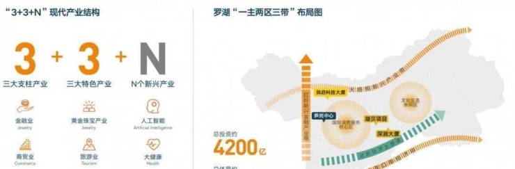 40年罗湖,双区驱动下,依托3+3+N现代产业体系,构建“一主两区三带”格局,总投资约4200亿元,总体量约2300万㎡旧改体量,品牌开发商抢先登陆,打造城市更新改造的国际样板,率先建成可持续发展示范区。