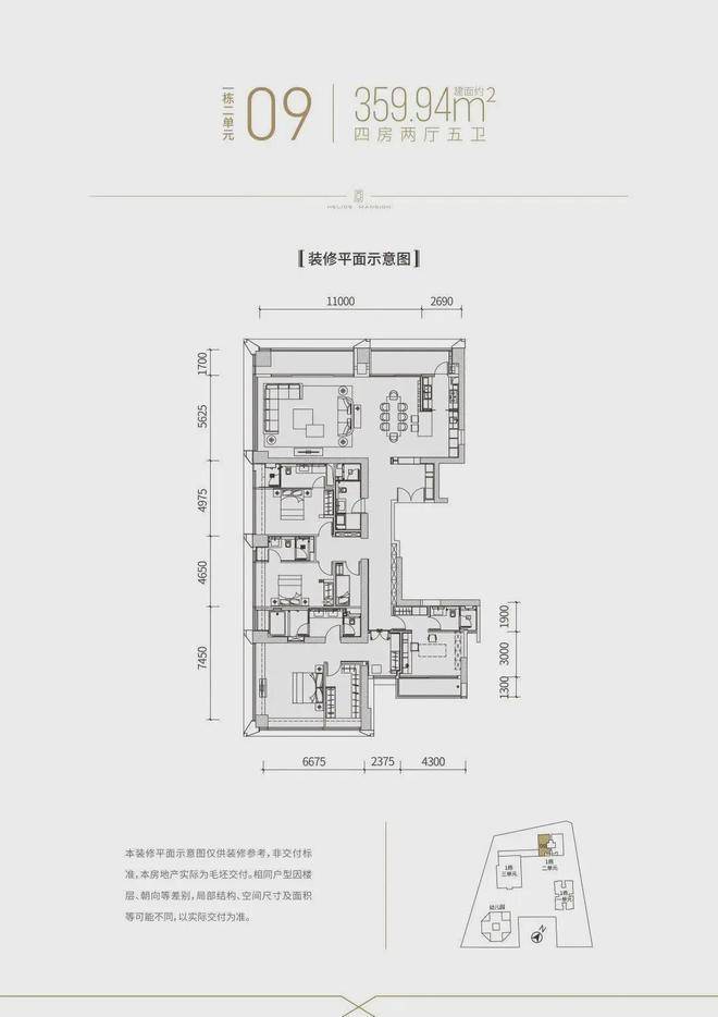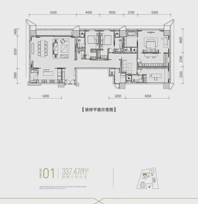【建面约337平4房全套房+1工人房3厅6卫】