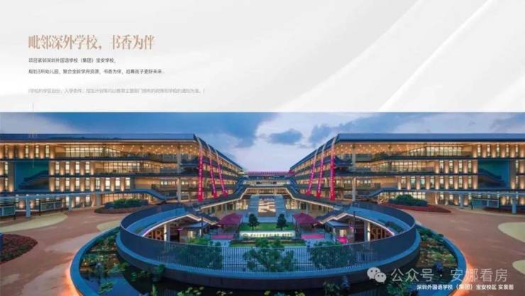 根据宝安区教育局 2025 年的学区划分,项目学区为深圳外国语学校(集团)宝安学校。2025 年项目北区 04 - 09 地块的深圳外国语学校宝安学校臻善校区已借址办学,孩子可以实现目送式上学,享受优质教育。不过要注意,有关学区划分、入学政策等教育规划均以当地教育主管部门的公示文件为准。