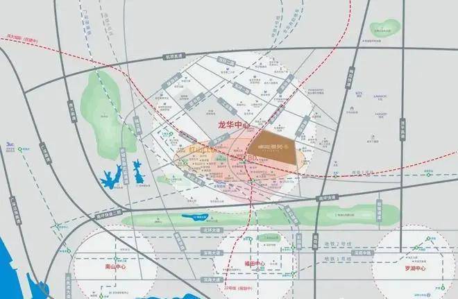 片区贯穿了南坪快速、布龙路、龙华大道、人民路、梅观高速等五纵五横城市主干道,15分钟抵福田,20分钟抵达罗湖、南山及深圳各大核心商圈。500米范围内有33号线深大城际(建设中)、22号线(地铁五期规划中)民治北站;临近5号线五和站、民治站。
