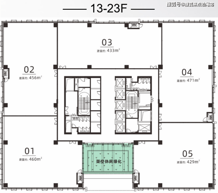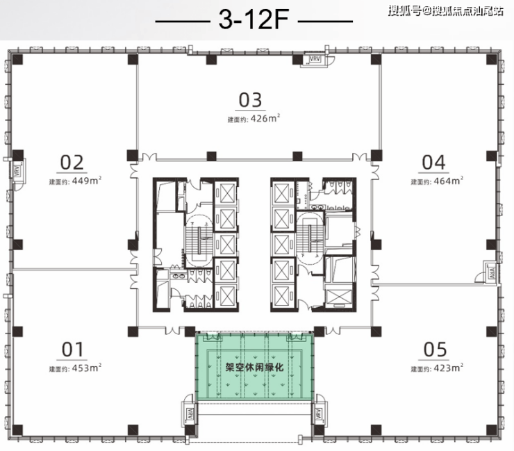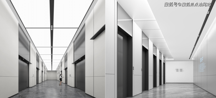 开敞式电梯厅设计,全天持续采光通风,安心健康绿色办公,会呼吸的电梯厅!
