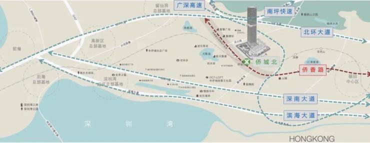 2⃣多维交通体系 距侨城北地铁口仅3分钟路程,15分钟内即达北环立交、广深高速,通往福田CBD、前海中心、宝安机场及珠三角各方向