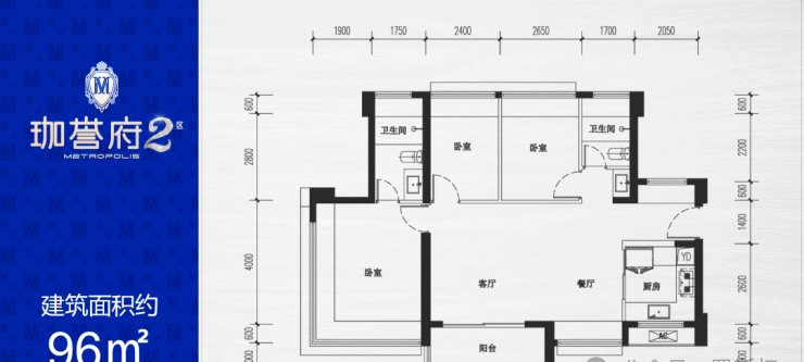 约96㎡(横厅)三房两厅两卫 总价约483-502万