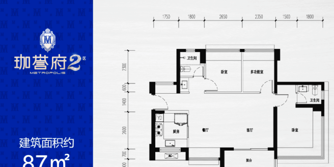 约87㎡(横厅)三房两厅两卫 总价约440-458万