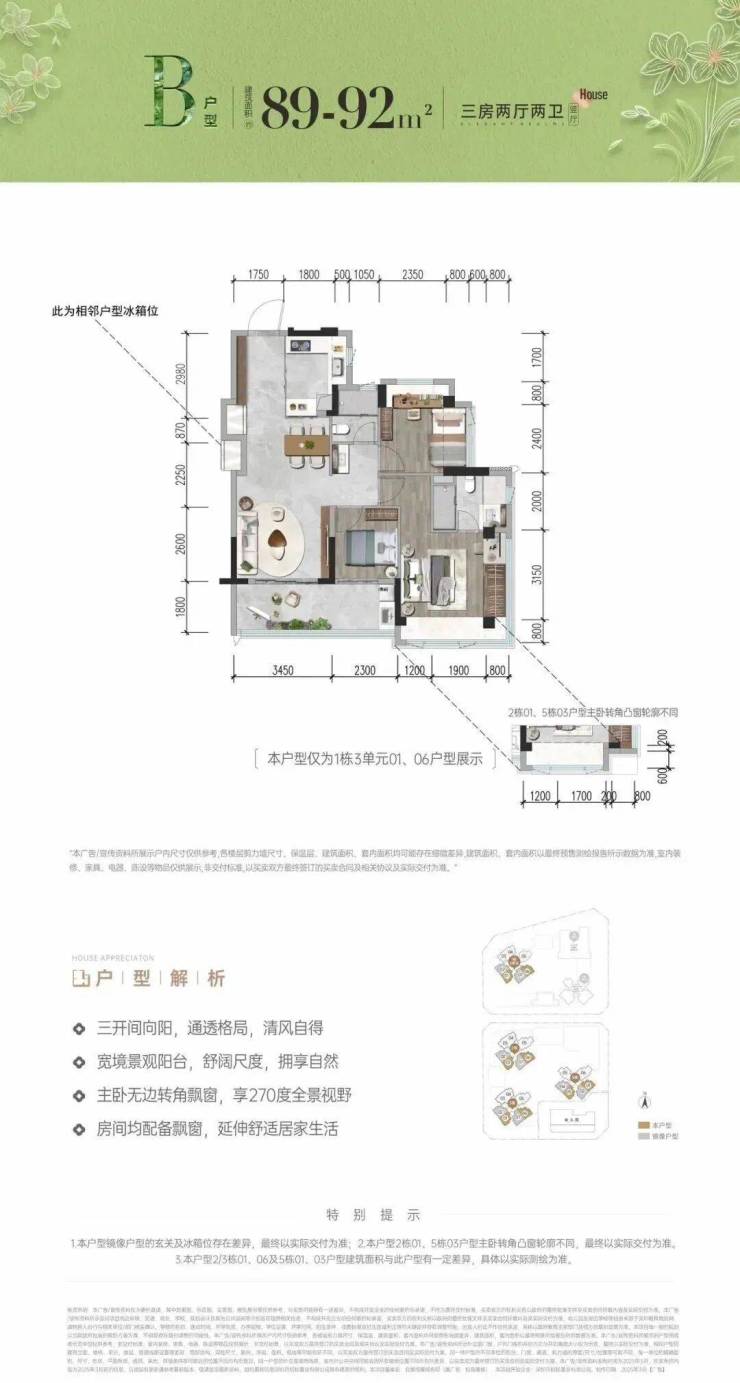 首次推首北地块1栋3单元,约80-92㎡ 3房,共195套,新规使用率高达96%-105%!