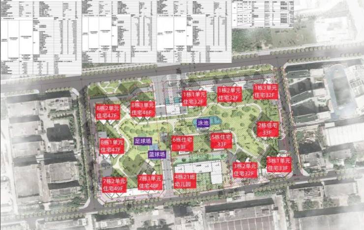 二期:7栋1单元为商品房住宅48层,7栋2单元为商品房+安居房混搭住宅49层,8栋1单元为商品房+安居房+公共租赁用房混搭住宅47层,8栋2单元为商品房住宅47层,8栋3单元为商品房住宅46层;商品房有1507户,其中1419户为建筑面积90平以下刚需户型;